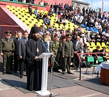 | Епископ Амвросий благословляет призывников |